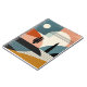 Paysage abstrait d'une scène désertique aux lignes et aux formes dans les tons marron, orange, turquoise, beige, bronzé et noir.