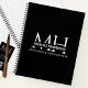 Design features a simple modern white monogrammed business logo in the center on a black background. Perfect for small business owners, tattoo artists, hair stylists or photographers to have for business ideas or note keeping.