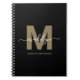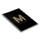 Cahier à spirale personnalisé avec monogramme élégant moderne noir et or. Ce cahier chic est conçu avec une touche sophistiquée et stylée, avec une initiale dorée plate (sans scintillement ni feuille) centrée sur un fond noir élégant. Un nom en écriture cursive blanche se superpose à l'initiale en calligraphie élégante, avec le prénom et le nom complets imprimés en dessous dans une police moderne et propre pour ajouter une finition personnelle et soignée. Parfait pour une utilisation professionnelle au bureau, pour l'école - qu'il s'agisse de collège, de lycée ou d'université - ou simplement pour rester organisé avec style, ce cahier est idéal comme cadeau unique et attentionné pour les fêtes, les anniversaires, la fête des mères ou toute occasion spéciale. C'est un choix pratique et luxueux qui allie élégance et fonctionnalité, idéal pour quiconque apprécie une touche raffinée