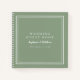 Moderne et tendance, le livre d'or vert et blanc mariage keepsaké propose un design minimaliste contemporain simple, avec une bordure double encadrée en blanc immaculé sur un arrière - plan rustique et tendance vert sauge. Personnalisez le design mariage avec vos détails en lettres blanches et en écriture. Le fond du livre est assorti de vert massif.