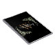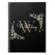 Élégant cahier de nom de monogramme à aquarelle avec feuilles verdoyantes avec un monogramme doré et votre nom dans un script blanc chic sur fond noir. Conçu par Thisisnotme©