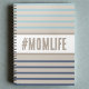 Cahier en bleu turquoise, beige et blanc. Conception de citation personnalisée "#momlife" dans des couleurs de plage. Le cadeau idéal pour votre maman pour son anniversaire ou la fête des mères.