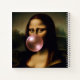 Une représentation drôle de Mona Lisa soufflant une gomme à bulle rose