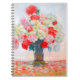 Carnet avec la peinture de Claude Monet. Belles pivoines rouge, jaune et blanc dans un vase bleu. Un grand cadeau Monet pour les amateurs d'impressionnisme et d'art français.