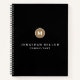 Moderne minimaliste Noir Or Classic Monogramme Nom initial Titre Texte personnalisé Modèle Bureau Carnet scolaire