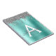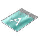 Cahier à spirale monogrammé en métal brossé pailleté argenté et sarcelle bleu aqua avec faux foil métallisé. C'est le cadeau idéal pour un anniversaire des 16 ans, un mariage, une douche de mariée, un anniversaire, une baby shower ou une soirée d'enterrement de vie de jeune fille pour quelqu'un qui aime le luxe glamour et les styles chics.