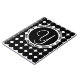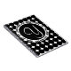 Des points noirs dans des quartiers rapprochés créent un motif secondaire d'étoiles blanches. Un grand cercle noir est entouré de lignes blanches, tandis qu'un seul cercle blanc initial grace le centre.