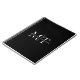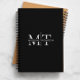 Ce cahier présente un design élégant et minimaliste avec un fond sombre et un texte blanc contrastant. De grandes initiales de style serif sont centrées et divisées par une fine ligne verticale pour la symétrie, avec un texte majuscule plus petit en dessous dans une police sans-serif moderne. La mise en page est propre et épurée, créant une esthétique raffinée, professionnelle et contemporaine.