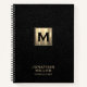 Carnet Monogramme d'or en cuir noir