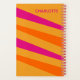 carnet personnalisé monogramme vintage rétro super des années 1970. Bandes audacieuses en orange, rose et moutarde. Personnalisez cette typographie stylée et colorée.