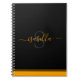 Carnet personnalisé simple et moderne pour votre journalisation. L'élégant script orange sur le noir correspond à la ligne design en couleur mais la compense dans le style, créant une torsion amusante à l'aspect minimaliste.