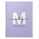 Personnalisé Élégant Moderne Lumière Purple Nom Script Premier Monogramme Carnet Spiral. Ce carnet simple et ceinturé est doté d'un arrière - plan mauve clair avec une initiale blanche propre qui s'associe magnifiquement avec un nom de script noir écrit à la main. Sous l'initiale, le prénom complet et le nom de famille sont imprimés dans une police moderne et élégante, créant un look poli et féminin. Parfait comme carnet scolaire, bureau essentiel ou carnet de croquis élégant, ce design est à la fois pratique et personnel. Que vous soyez étudiant, enseignant ou professionnel créatif, ce carnet est un choix judicieux pour les anniversaires, les vacances, la rentrée scolaire ou toute occasion spéciale. Un cadeau sucré et fonctionnel pour tous ceux qui apprécient une touche d'élégance dans leur essentiel quotidien.