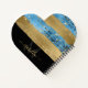 Fille moderne imprimé métal bleu clair carnet coeur en coups de pinceau avec or, parties scintillant, noir et orné de votre monogramme de script, prénom et initiale.