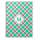 Carnet Monogramme moderne Turquoise Vert Plaid Tartan Mot
