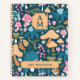 Vous cherchez un carnet en spirale monogrammé avec un motif de champignon ? Ce carnet personnalisé est imprimé avec vos initiales et votre nom, et un motif fantaisiste de champignons, de verdure et de fleurs en rose, bleu et pêche légère.