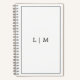 Carnet d'affaires simple avec un design moderne et élégant avec votre monogramme à deux lettres entouré d'une bordure en noir et blanc classique. L'arrière contient vos coordonnées. Ce carnet personnalisé au style minimaliste conviendra à tous les types d'entreprises.