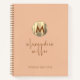 Emblème métallique minimaliste Or moderne Nom initial Script Girly Texte personnalisé Modèle Pastel Peach Orange Arrière - plan Monogramme Carnet