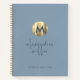 Emblème Métallurgique Minimaliste Moderne Dusty Bleu Initial Nom Girly Script Professional Titre Rôle Texte Personnalisé Modèle Monogramme Carnet
