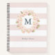 Cet élégant carnet / journal / carnet de croquis présente un monogramme et une couronne de fleurs de cerisiers roses sur un arrière - plan blanc aux rayures roses. Modifiez la couleur de l'arrière - plan et personnalisez-la selon vos besoins. Vous pouvez trouver des produits correspondants dans mon magasin.