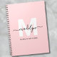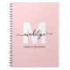 Cahier à spirales personnalisé avec monogramme élégant et moderne à l'initiale en rose blush. Ce cahier simple et féminin présente un fond rose blush doux avec une initiale blanche qui se marie parfaitement avec un nom écrit à la main en noir. Sous l'initiale, le prénom et le nom complets sont imprimés dans une police moderne et élégante, créant un look soigné et féminin.