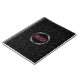 Elégant et simple noir monochromatique motif floral damassé et cercle noir argenté. Touche de rose. monogramme personnalisé