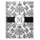 Un carnet initial personnalisé avec un motif damassé élégant de marguerites vintages et de feuilles avec des rouleaux en noir sur blanc. Customisez-le pour changer les couleurs arrière - plans et plus encore.