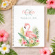 Un élégant arrière - plan blanc décoré d'un flamand rose et de fleurs tropicales et de feuillage. Personnalisez et ajoutez un nom et vos initiales monographiques.