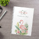 Un élégant arrière - plan blanc décoré d'un flamand rose et de fleurs tropicales et de feuillage. Personnalisez et ajoutez un nom et vos initiales monographiques.