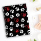 Joli, amusant et adorable motif avec pattes blanches et rouge et coeurs sur arrière - plan noir. Un cadeau moderne et tendance, parfait pour l'amoureux des chiens dans votre vie.