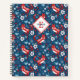 Un mignon chaton kitty art folklorique motif en bleu marine et rouge décore ce carnet. Personnalisez-le avec votre nom monographique. Un cadeau amusant pour un amoureux des chats ! Conçu pour vous par Blackberry Boulevard.