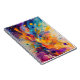 Une explosion vibrante de couleurs crée un motif abstrait qui semble couler et se fondre de manière transparente. Les éclats lumineux de jaune, orange, bleu et violet donnent un sentiment de mouvement dynamique et d'énergie.