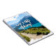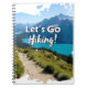 Ce design présente un étonnant lac dans des montagnes escarpées avec l'expression "Allons-y Randonnée !"