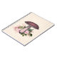 Joli look vintage design carnet avec des champignons teinté rose avec des fleurs roses et des feuilles verts luxuriants sur un arrière - plan rayé vintage