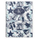 Ce carnet bordé est un motif d'été amusant d'éléments nautiques, dont l'ancre, la mouette, l'étoile de mer et bien d'autres, le tout en bleu marine avec des tourbillons et des accents bleu aqua ondulés. Ajoutez votre nom et/ou tout autre texte à l'aide du modèle fourni. Recherchez ID839 et ID840 pour voir d'autres produits avec cette conception et des options de couleur supplémentaires.