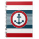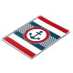 Design nautique avec décoration d'ancre en forme ronde sur bleu, rouge et blanc rayé arrière - plan