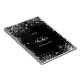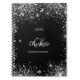 Arrière - plan noir, texte blanc. Décoré avec de la poussière de parties scintillant en faux argent. Personnalisez et ajoutez une année, un prénom, des initiales monographiques et un nom complet.