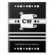 Carnet Noir et blanc ajouter les initiales nom strié