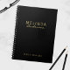 Carnet moderne professionnel avec nom en or moderne sans serif style de police et nom en or moderne calligraphie style de police sur arrière - plan noir. Remarque : Les détails du papier sont simulés dans l'illustration. Il n'y aura pas de métal sur ce produit.