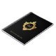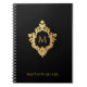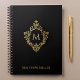 Une conception noire et or élégante avec le monogramme initial dans un blason de style vintage, recommandée pour un homme. Le blason est en or faux, le fond est noir. Dans la partie inférieure, il y a le nom en petites lettres dorées.