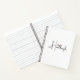 Un script de style manuscrit nom carnet personnalisé, avec un petit coeur rouge mignon interagissant avec la typographie. Vous pouvez utiliser l'outil de conception pour cliquer sur le coeur et le déplacer pour convenir à votre propre esthétique pour ce design, ou de le laisser tel quel. Créez votre propre signature élégante. Choisissez votre couverture et votre style de papier pour votre carnet monogramme signature.
