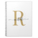 Cahier à spirale moderne, simple et élégant avec monogramme initial en or et blanc. Ce design minimaliste de couleur unie présente votre prénom dans un joli style de lettrage manuscrit avec une typographie à l'embranchement noir et un monogramme initial doré sur fond blanc. Facile à personnaliser. Cadeau personnalisé idéal pour les filles pour une fête d'anniversaire, une pendaison de crémaillère, un mariage, un anniversaire pour 16 ans, une fête de fiançailles, une baby shower et pour quiconque aime le style minimaliste chic.