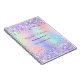 Un arrière-plan holographique tendance avec des couleurs de licorne et des couleurs arc-en-ciel en rose, violet, vert menthe. Décoré de confettis violets et lavande. Personnalisez et ajoutez votre nom, titre, texte