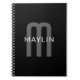 Carnet Nom monogrammé d'apparence moderne | Noir Gris Bla