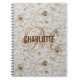 Plannière florale crème avec un arrière - plan en faux cuir à outils et un nom monogramme marron. Personnalisez le nom et l'initiale.