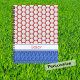 Des balles de golf créent un motif à pois lumineux sur un arrière - plan rouge à l'avant et à l'arrière de ce carnet. Sur le devant, les clubs de golf sont également utilisés dans un motif complémentaire sur un arrière - plan bleu, et il y a une bande blanche pour vous de personnaliser avec un nom ou un autre texte.