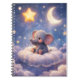 Dreams and inspiration in this enchanting watercolour spiral notebook featuring a sweet baby elephant nestled on a fluffy cloud beneath a globe, moon and golden stars. This notebook brings a touch of celestial magic to your daily writing the high-quality durable cover showcases the vibrant indigo sky and soft watercolour textures and stunning detail perfect for students streamers or as a whimsical gift.