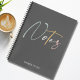 Un cahier élégant et mignon. Avec un fond gris foncé, le mot Notes est en typographie script dans des couleurs vert clair, gris, jaune et rose. En dessous, en typographie gris clair moderne, il est écrit "choses à faire".