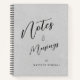 Arrière - plan gris, avec typographie de script moderne "Notes et Musings" pour inspirer vos idées et pensées créatives, personnalisées avec votre nom sur le devant et votre monogramme avec le nom sur le dos. Ajoutez vos propres informations en suivant le lien "Personnalisez ce modèle".