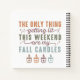 Ce design d'automne humoristique et cosy comprend la phrase spirituelle "La seule chose qui s'illumine ce week-end sont mes bougies d'automne" dans un mélange de polices audacieuses et élégantes. Le texte est aménagé de façon créative avec des tailles et des styles de police différents, ajoutant un intérêt visuel et un ton ludique. La palette de couleurs comprend des teintes chaudes d'automne comme l'orange brûlé, les verts terreux et les marron doux, qui évoquent la chaleur et le confort de la saison.
