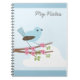 Oiseau bleu sur la branche rose de fleur. Carnet de notes à spirale avec le texte facultatif de "mes notes".